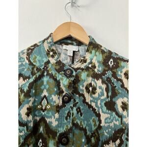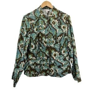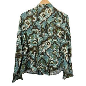 Charter Club Womens Linen Abstract Print Jacket Size 1X Green Coastal Grandma