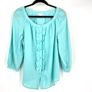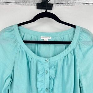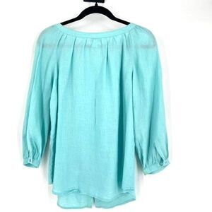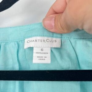 Charter Club Women's Linen Button Down 3/4 Sleeve Top Blouse Turquoise Size 6