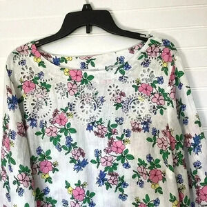 Charter Club Women's Linen Floral-Printed Top Tunic Size XL WHIT, PINK, GREEN