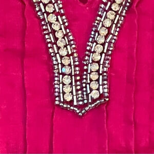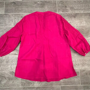 * Excellent used condition Charter Club women’s linen tunic with rhinestone embellishments and pleated details on the front, back, and sleeves. Bright pink.