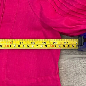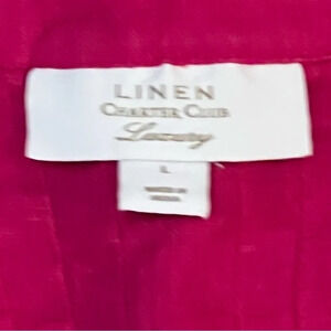 * Excellent used condition Charter Club women’s linen tunic with rhinestone embellishments and pleated details on the front, back, and sleeves. Bright pink.