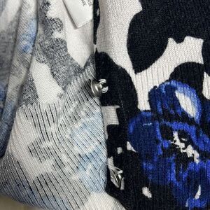 Crafted from cozy and lightweight knit fabric, this stylish cardigan is the perfect addition to your fall/winter wardrobe. The button-front closure and scoop neck create a versatile and flattering silhouette, while the long sleeves provide extra warmth. With its eye-catching floral design, this sweater is a trendy and comfortable option for any casual occasion.
