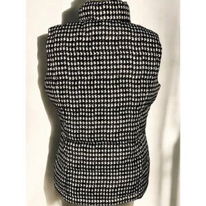The Charter Club Lucy Houndstooth Puffer Vest in Medium is a chic and functional addition to any wardrobe. Featuring a full zip front, mock neckline, and practical hand pockets, it combines style and utility seamlessly. The black and white houndstooth pattern adds a timeless touch, making it a versatile piece for layering during cooler weather.
