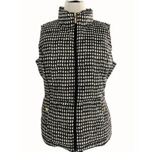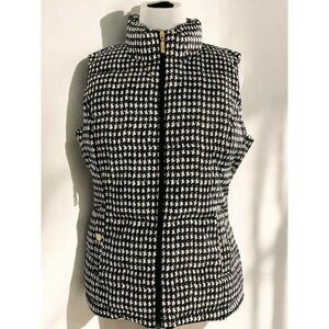 Charter Club Womens Lucy Houndstooth Puffer Vest Medium Full Zip Mock Neck NEW