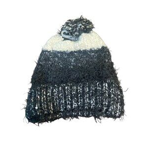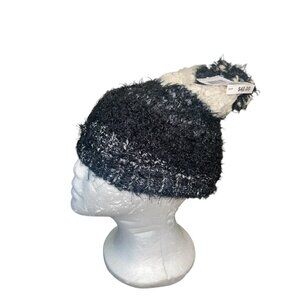 Charter Club Women's Mixed Media Chenille Cuff Beanie Hat Black Ivory Retail $40