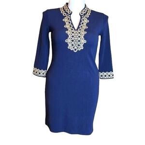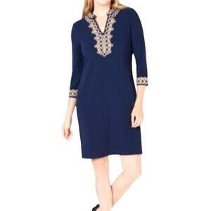 Blue & Gold Knit Ottoman Sheath Dress Charter Club