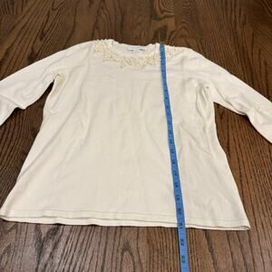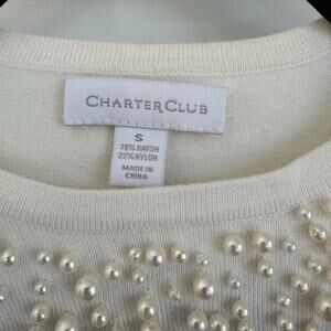 Charter Club Womens Pearl Beaded Embellished Cream Crew Neck Sweater Size Small