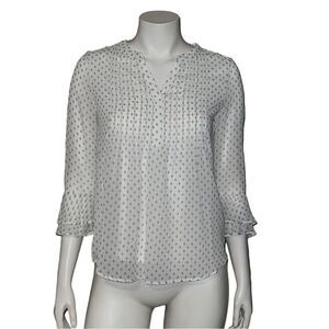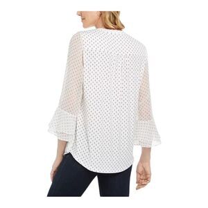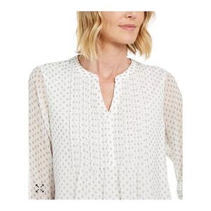 Charter Club Womens Petite Printed Pintuck Top White Black Cloud Combo Small NWT