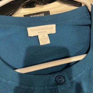 Charter Club Women’s Plus Size 2X Teal Button-Up Cardigan Sweater Top