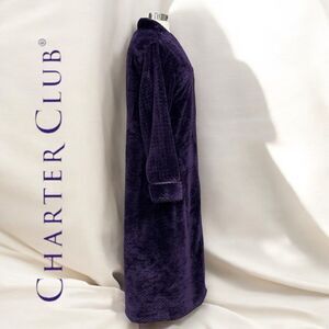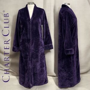 Charter Club Women’s Plush Zig Zag Zipper Robe in the Size Large in Deep Purple
