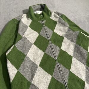 Charter Club Women's Regular Green Argyle 2-Ply Cashmere Full Zip Sweater Size L