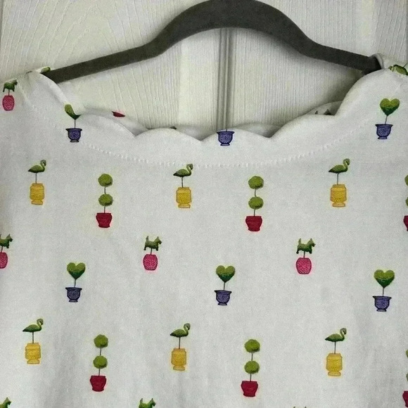 Charter Club Womens Short Sleeve Scallop Neck Flamingo Heart Terrier Shrub Sz S