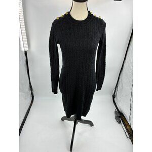 Charter Club Womens Size P Petite Black Cable Knit Long Sleeve Sweater Dress