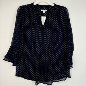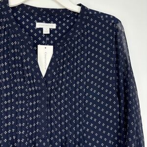 Charter Club Womens Small Pintuck Top Intrepid Blue White Print Sheer 3/4 Sleeve