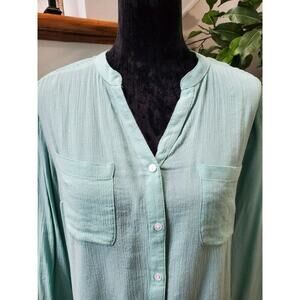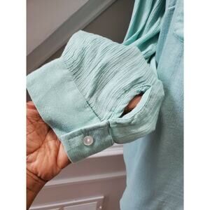 Charter Club Women's Solid Aqua Cotton & Viscose V-Neck Long Sleeve Blouse Large