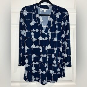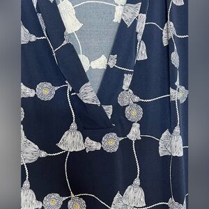 Charter Club Women’s Top - Navy w/tassel design - Size Large