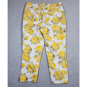 Charter Club Women's Yellow Floral High Rise Cotton Blend Capri Pant Size 8