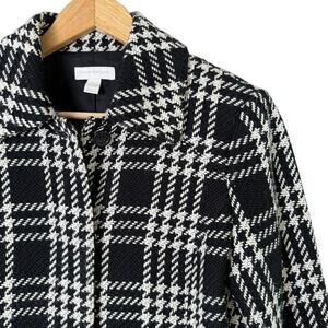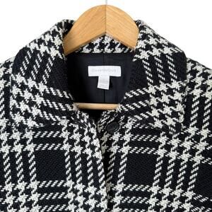 Charter Club Wool Blend Tweed Plaid Coat Black White Button Front, Size 4