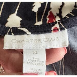 Flattering silhouette with wrap style front and ruching held with buckle on side. Stretchy and not clingy. Charter Club size XL, goes perfectly from office to dinner, looking professional whatever the occasion.