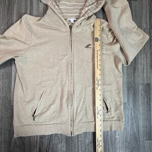 Charter Club hoodie, women’s beige hoodie, XL zip hoodie, cotton blend jacket, neutral hoodie, Korea made hoodie, striped hood, Charter Club jacket, zippered hoodie, casual hoodie, comfy jacket, fall zip hoodie, long sleeve sweatshirt, women’s casual zip up, hooded jacket XL