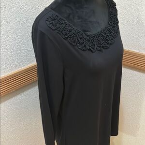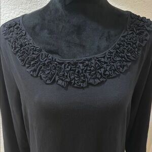This elegant black top features a stylish ruffled neckline, perfect for any occasion. Its sleek design offers a sophisticated look. size XL. Great condition!!