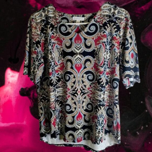 Charter Club XLG short sleeve paisley design black gray pink woman's blouse. Gently used. No rips stains snags.