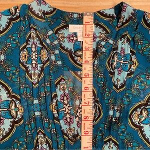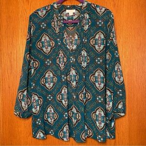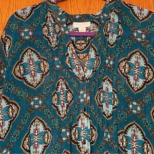 Charter Club XL-Petite Teal Paisley Blouse V-Neck Pin Tuck Pleats 3/4 sl…