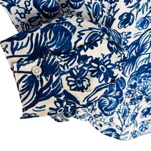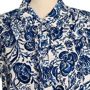 Charter Club X-Large Top Floral Long Sleeve Button-Up Ruffled Collar Blue White