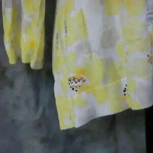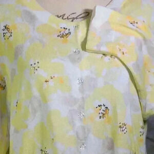 Add some sparkle to your wardrobe with this beautiful Charter Club sweater. The yellow color and floral pattern make it perfect for any occasion, whether you're dressing up for a party or dressing down for a casual day out. The tight-knit and lightweight fabric make it suitable for all seasons, while the 3/4 sleeves and round neckline provide a classic and comfortable fit. This sweater features sequins and buttons as accents, adding a touch of glamour to your outfit. It's machine washable for easy care and maintenance. This sweater is a size XL and fits true to size. Wear it with confidence knowing that you'll look great no matter where you go.