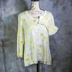 Charter Club Yellow sequins button down sweater w/pattern size XL