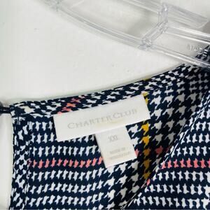 Charter Club black white pink plaid houndstooth chiffon lightweight top XXL