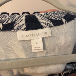 Charter Club - comfortable and stylish dress with navy brocade trim.