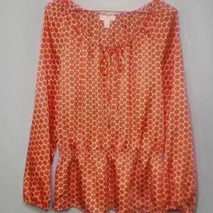 Charter Club orange white women's long sleeve with elastic waist blouse size M