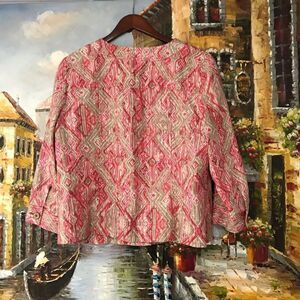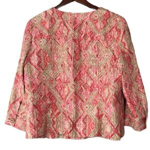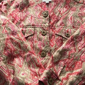 Charter Club pink and taupe three quarter sleeve linen casual jacket size large