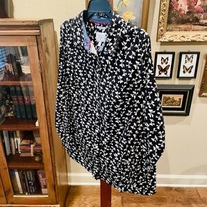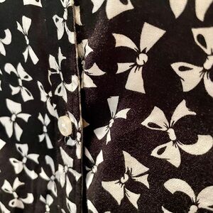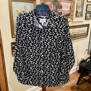 Charter Club plus size long sleeve button cotton top bow pattern 18W black white