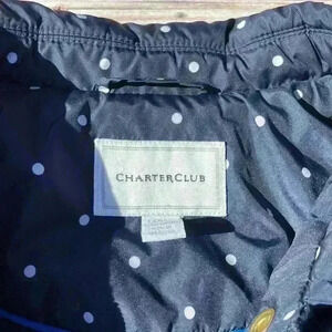 Charter Club polka dot quilted jacket with pockets zipper and button closure L
