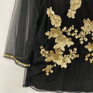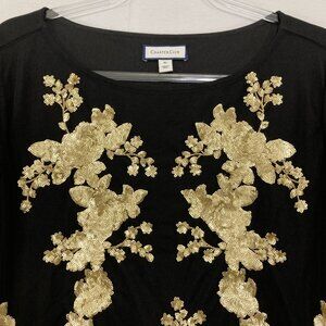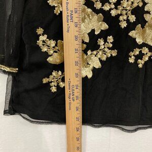Charter Club size XL Black Gold Sequins Mesh Stretch Blouse Evening Formal
