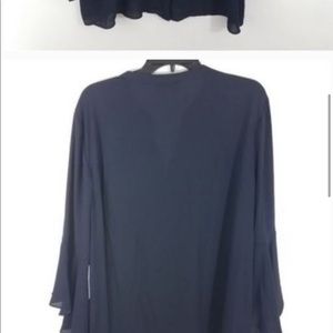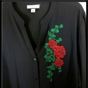 Charter Club size XXL black button down blouse with rose appliqué, bell sleeve