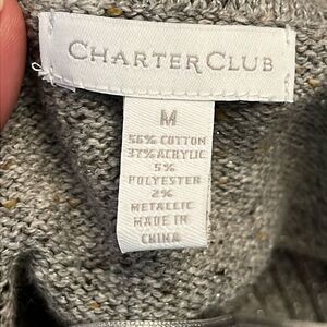 Charter Club size medium grey /metallic sweater cropped sleeves