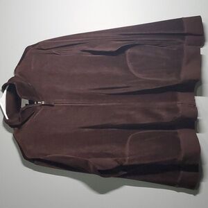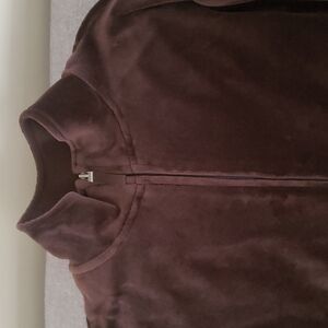 charter Club brown velour like zippered sweat jacket warmup sz 1X plus beautiful preloved condition activewear athletisure everyday cozy comfy uniform color darker brown deep chocolate color 2 nice clean pockets 74% cotton 26% polyester