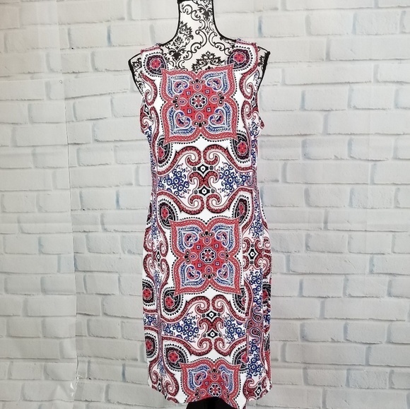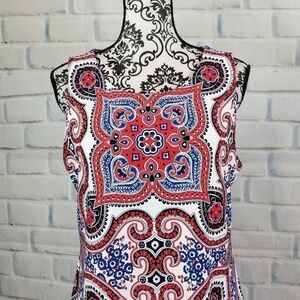 This is a women's sleeveless geometric print stretch knit dress size large by Charter Club
