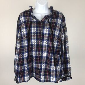 Charter Club Cotton Plaid Dot-Print Blouse size XL