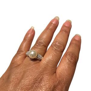 Charter Club Fine Silver Plate Pave & Imitation Pearl Ring size 10