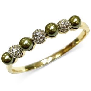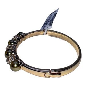 Charter Club Gold-Tone Pavé Fireball & Green Imitation Pearl Bangle Bracelet NWT