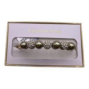Charter Club lends a sweet touch to your overall style with this pretty fireball and sage green imitation pearl bangle bracelet.