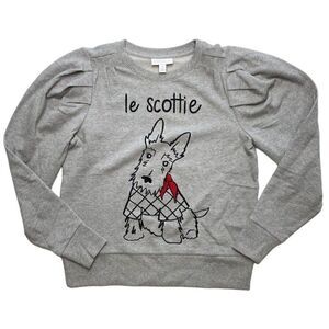 Charter Club Scottie Dog Sweatshirt Top Women's PETITE MEDIUM Gray Black Relaxed