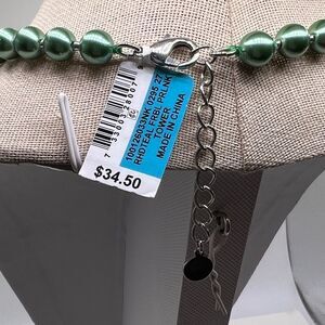 Charter Club Silver-Tone Pavé Fireball Teal Imitation Pearl Collar Necklace New