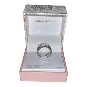 Charter Club Silver-Tone Pave Openwork Heart Ring Size 6 New in Box