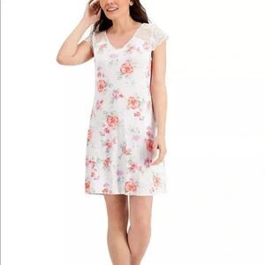 Charter Club White Blossoms Lace-Sleeve Chemise Nightgown Extra Small NWT