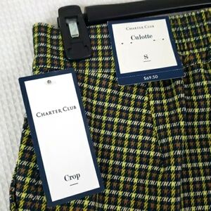 Charter Club~Woman Size S~Brown/Yellow Plated Culotte Wide Leg Country Pants NWT